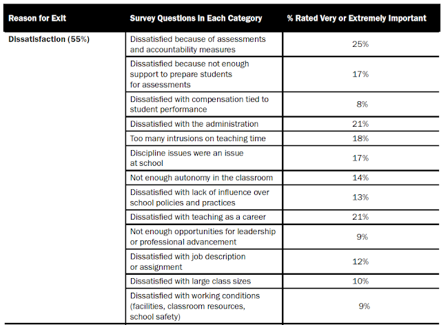 The report does not stop at supply and demand. It also has a survey of the reasons why teachers leave.